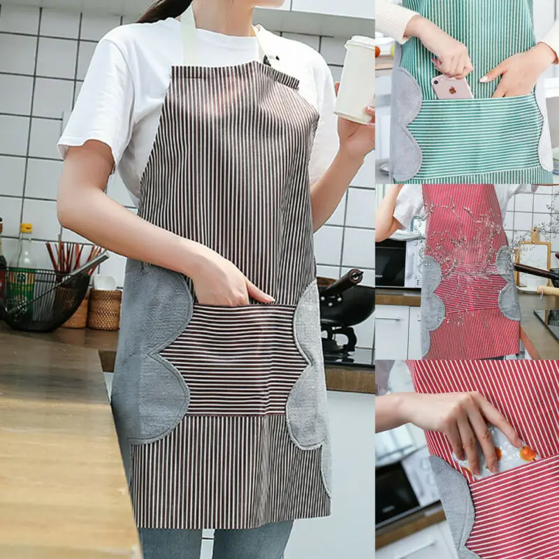 Для женщин полосатые безрукавные фартуки Пособия по кулинарии шеф-повара Кухня дома ресторана Bib фартук-платье с Подарочный мешок сухой кар...