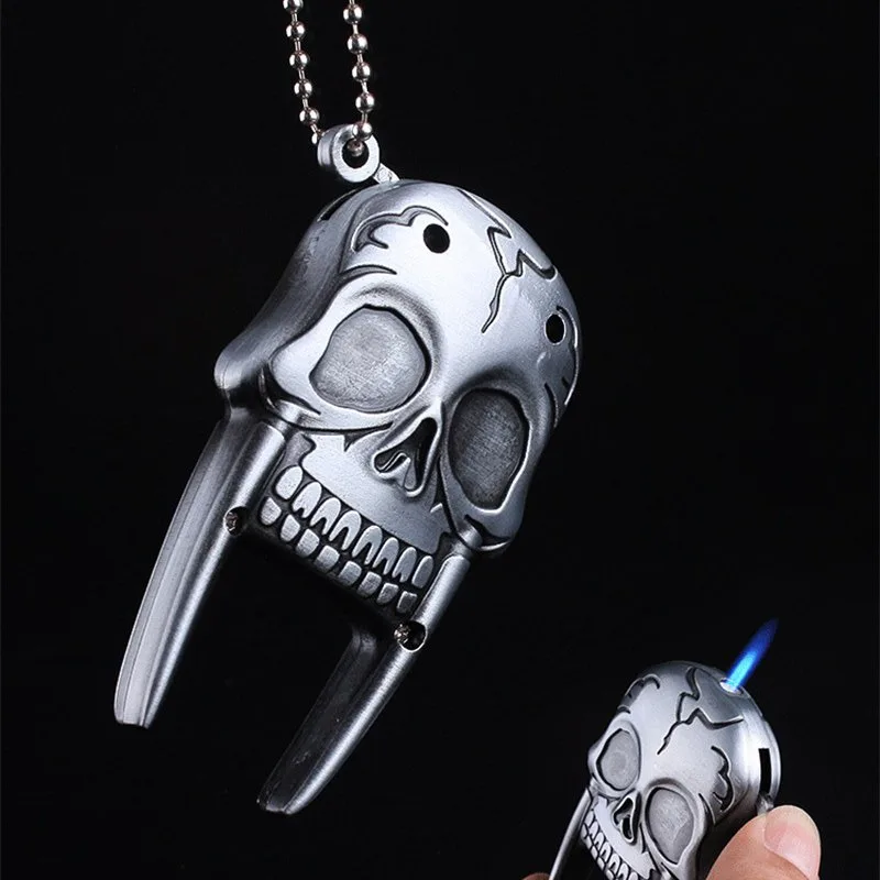 3D Череп Форма прикуривателя креативная многоразовая ветрозащищенная реактивная газовые зажигалки с бутаном с переносной брелок для ключе...