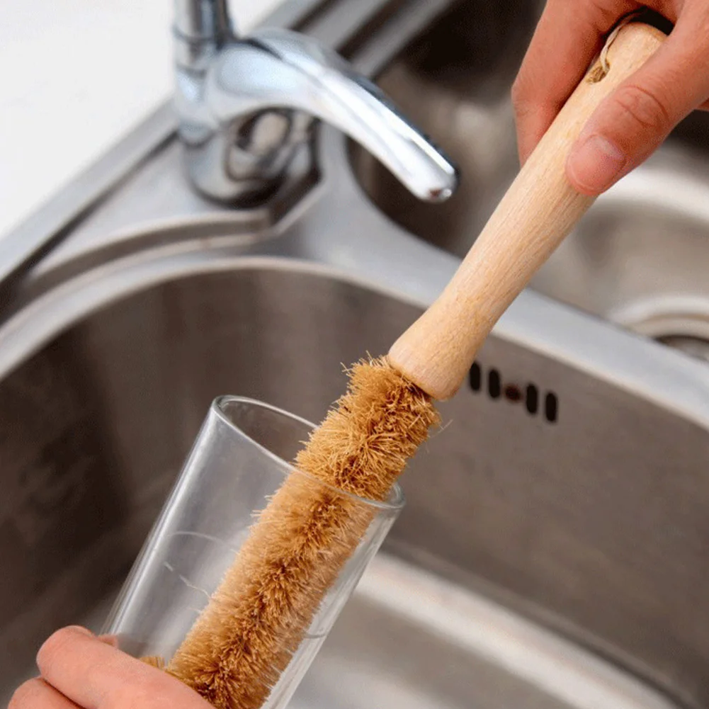 Противоскользящий инструмент для удаления грязи с висячим отверстием, натуральная угловая длинная чашка для чистки бутылок, аксессуары, деревянная ручка для домашней кухни