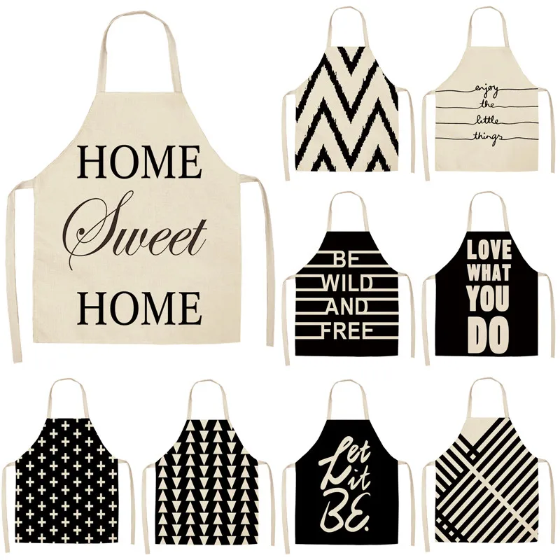 1 шт Черный и белый геометрический письмо Кухня фартуки унисекс домашние Пособия по кулинарии магазин выпечки очистки нагрудники из хлопка ...