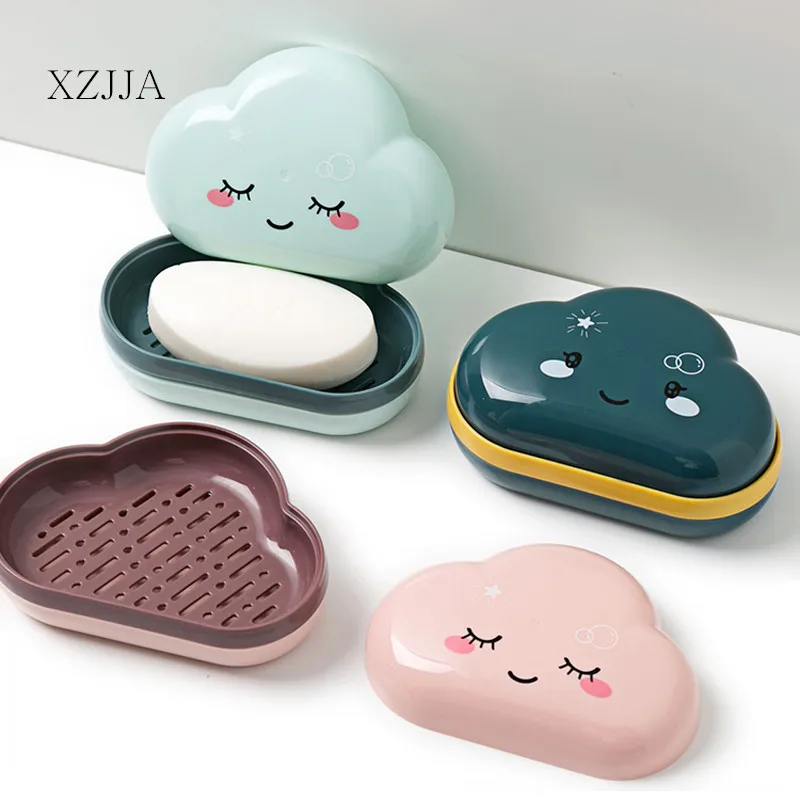XZJJA, милый мультяшный мыльница в форме облаков, дренаж для мыла, держатель для мыла, портативное мыло для путешествий, защитный чехол, аксесс...