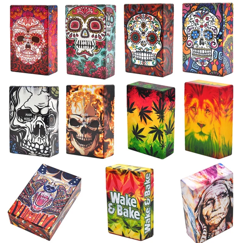 Необычные дизайн череп Пластик мягкие Портативный портсигары для 20 сигарет аксессуары Для мужчин Для женщин подарочные зажигалки случае т...