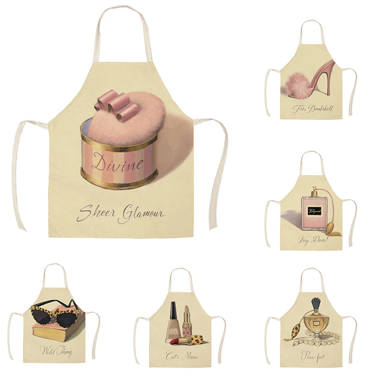 1 шт., кухонный фартук, духи, очки, декоративные, с принтом, без рукавов, хлопок, лен, фартуки для мужчин и женщин, инструменты для уборки дома 55*...