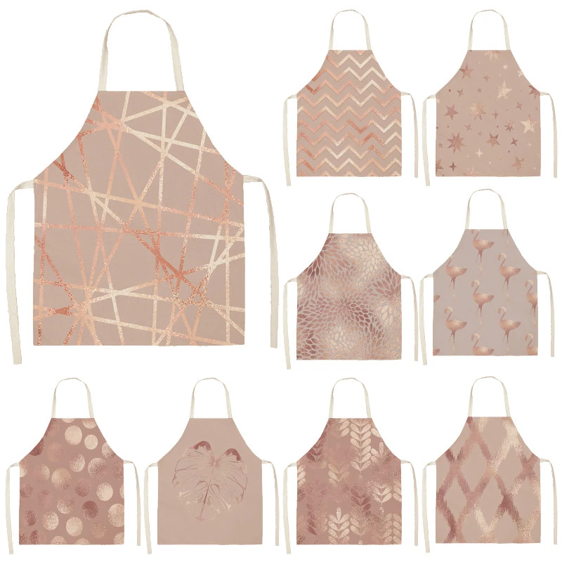 Цвет-розовое золото с геометрическим принтом из хлопка и льна безрукавные фартуки цветок Кухня Для женщин сарафан дом Пособия по кулинарии выпечки талии нагрудник WQL0154