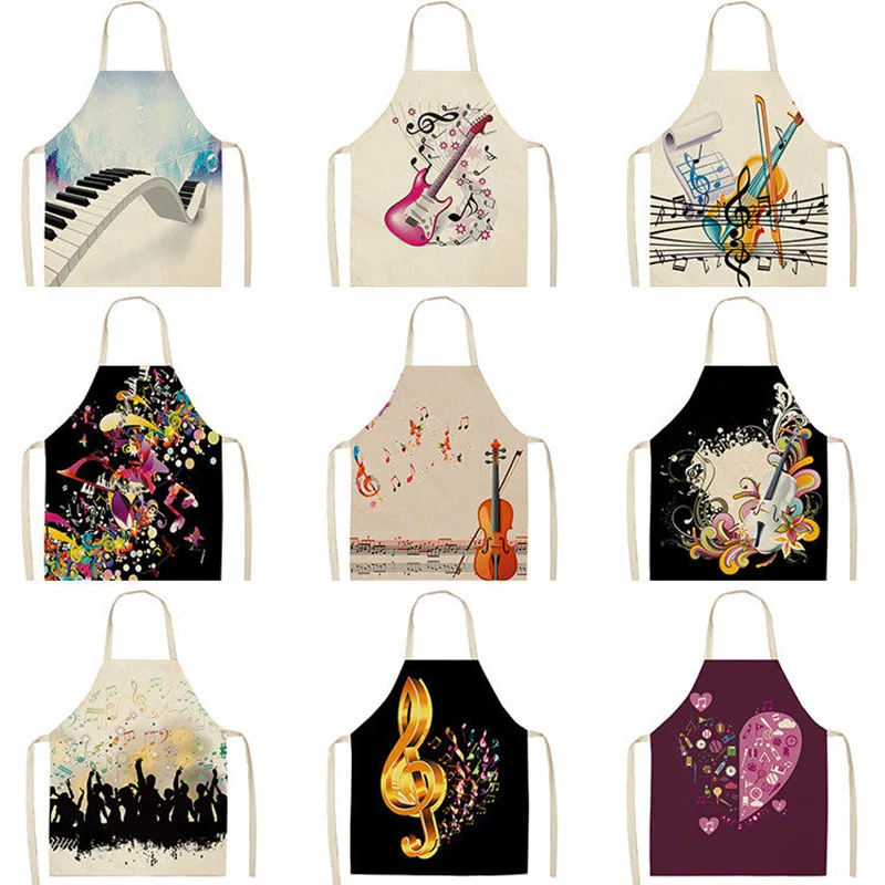 1 шт. музыкальная нота узор кухня женские фартуки и человек звавечерние ужин пособия по кулинарии нагрудники чистящие средства хлопок лен 53*...