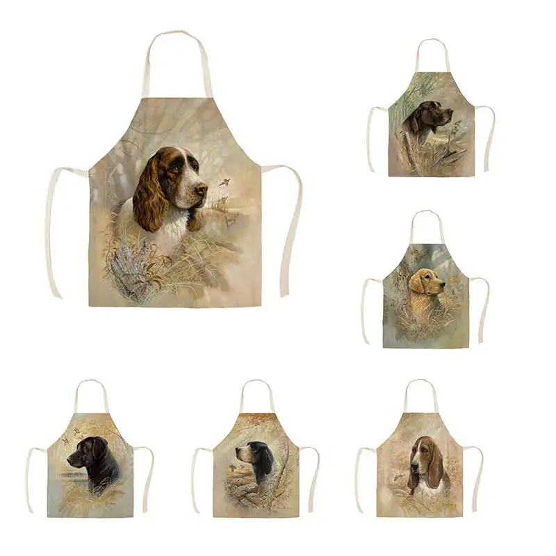 1 шт., кухонный фартук, эскиз, черная голова собаки, с принтом, без рукавов, хлопок, лен, фартуки для мужчин и женщин, инструменты для уборки дом...
