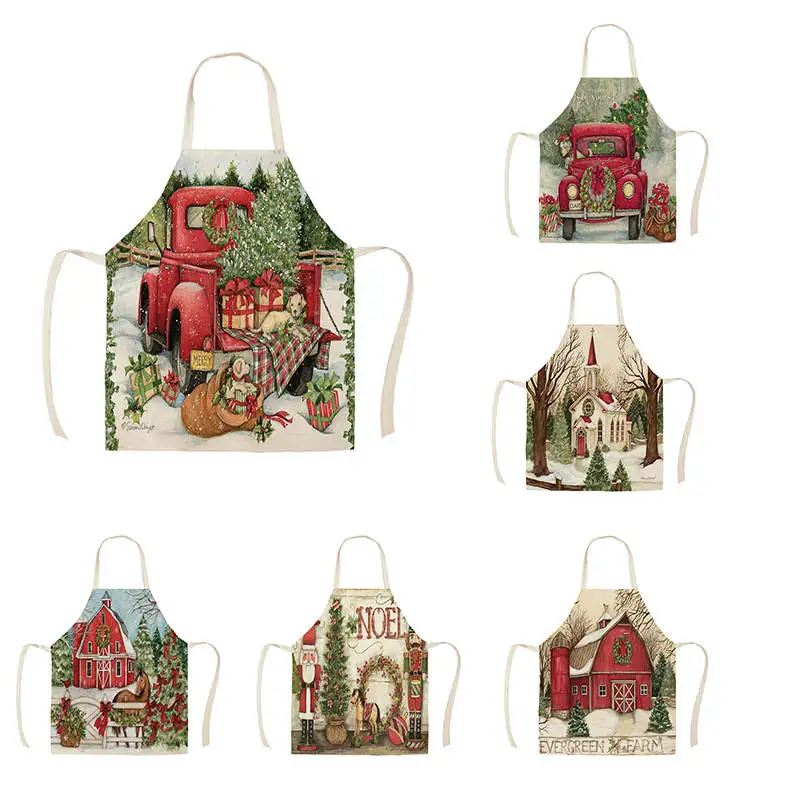 1 шт., кухонный фартук, красный грузовик, Рождественская елка желаний, без рукавов, хлопковые льняные фартуки для мужчин и женщин, инструмент...