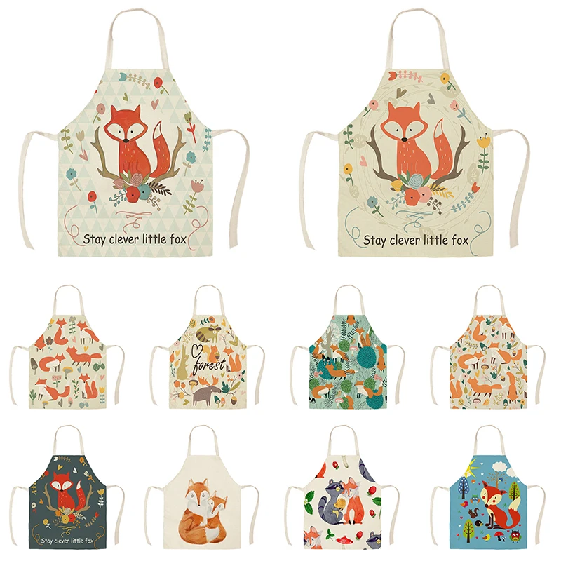 Льняные фартуки в скандинавском стиле с милой лисой, унисекс, вечерние, для приготовления пищи, нагрудник, Забавный фартук для чистки, WQF593