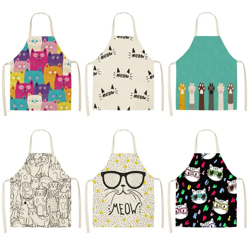 1 шт., кухонные фартуки с принтом милых кошек, 53*65 см, женский, взрослый, детский, хлопковый, льняной нагрудник, домашний, для приготовления пищ...