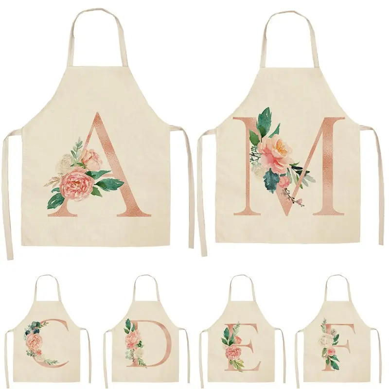 1 шт. розовые Кухонные фартуки с буквами для женщин, хлопковые льняные фартуки для уборки дома, фартук для приготовления пищи 53*65 см Q0005