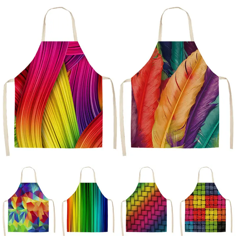 1 шт. Радужный цветной геометрический кухонный фартук для женщин, хлопковый льняной нагрудник, бытовой чистящий фартук для приготовления пи...