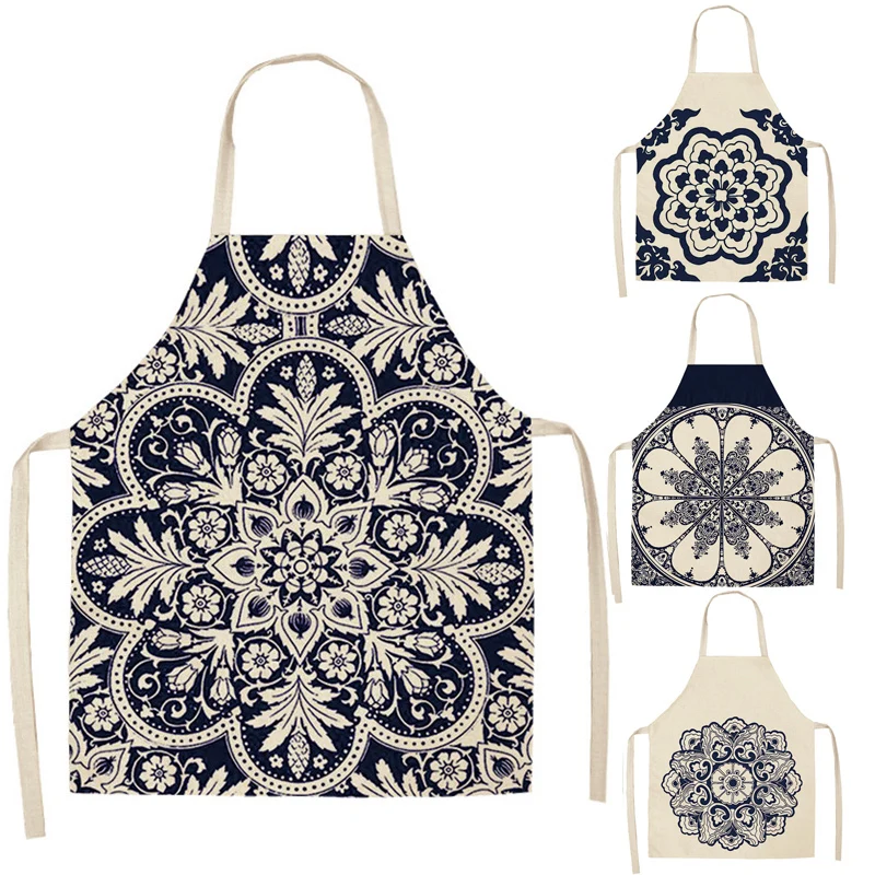 1 шт. синий и белый фарфор с рисунком оленя Кухонные фартуки из хлопка и льна унисекс вечерние нагрудники для приготовления пищи чистящие ср...