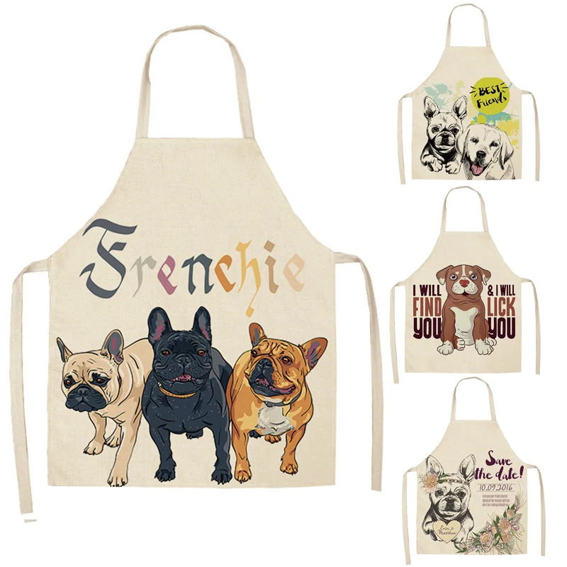 1 шт. хлопковая льняная собака породы бульдог с принтом Кухонные фартуки унисекс ужин вечерние кулинарный нагрудник Забавный фартук для чис...