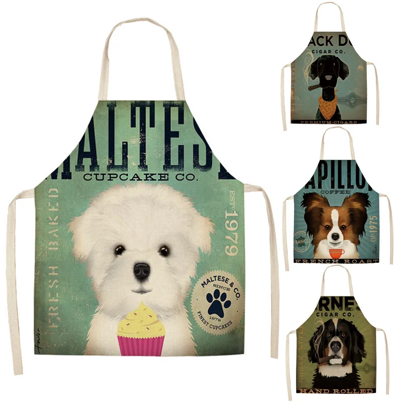 Современный минималистичный фартук из хлопка и льна с милым рисунком собаки из мультфильма освежает и легко надевается