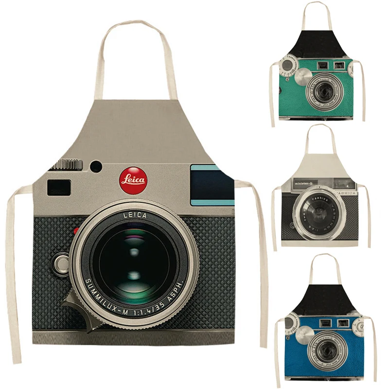 Ретро камера узор Кухонные фартуки женщина Девушка Хлопок Винтаж камера кулинарный салон Винтаж фартук платье