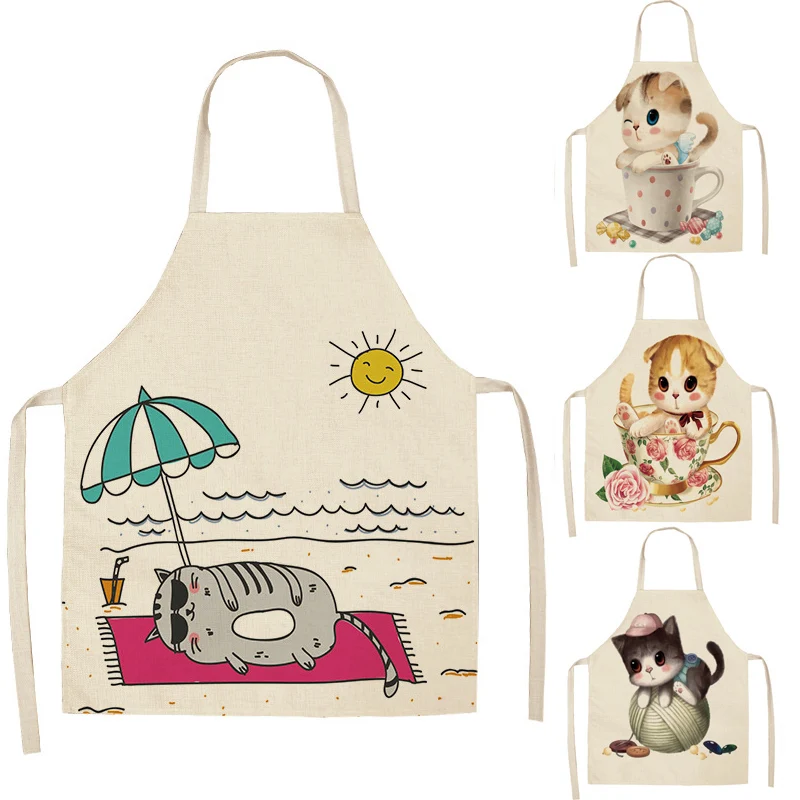 1 шт. Кухня фартук с милым рисунком кота без рукавов, из хлопка и льна фартуки для Для мужчин Для женщин инструменты для уборки дома