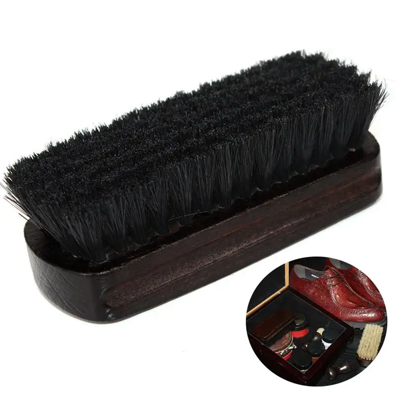 Загрузки Кисть Очиститель блеск обуви свиная щетина кисть с деревянной ручкой (черный Цвет)
