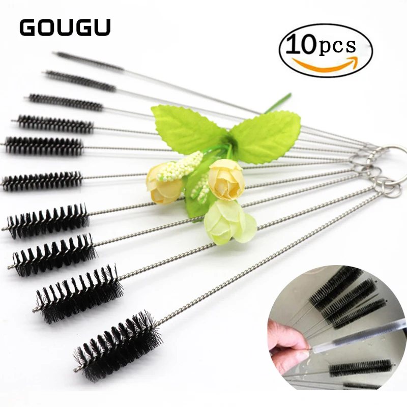 10 шт. нейлоновая трубка набор чистящих кистей 304 нержавеющая сталь чистящие инструменты для питья соломинки клавиатуры очки чайник трубка в виде бутылки
