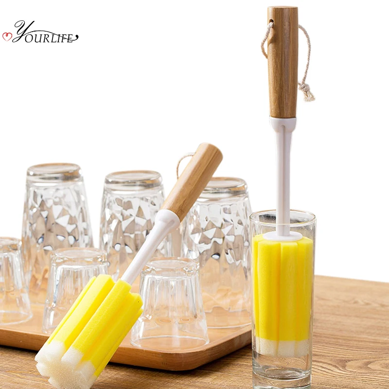 OYOURLIFE натурального бамбука длинная ручка чашки кисточки стекло чашки бутылки молока чайник Очиститель скруббер губка щетка для очищения ку...
