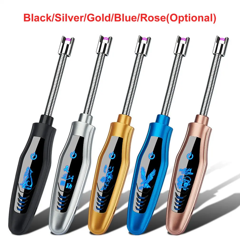 Перезаряжаемая USB кухонная Зажигалка Ветрозащитная Электронная зажигалка плазменная импульсная дуговая беспламенная Зажигалка со светодиодным экраном