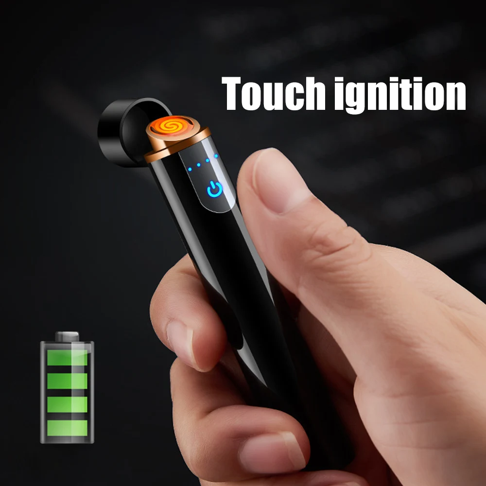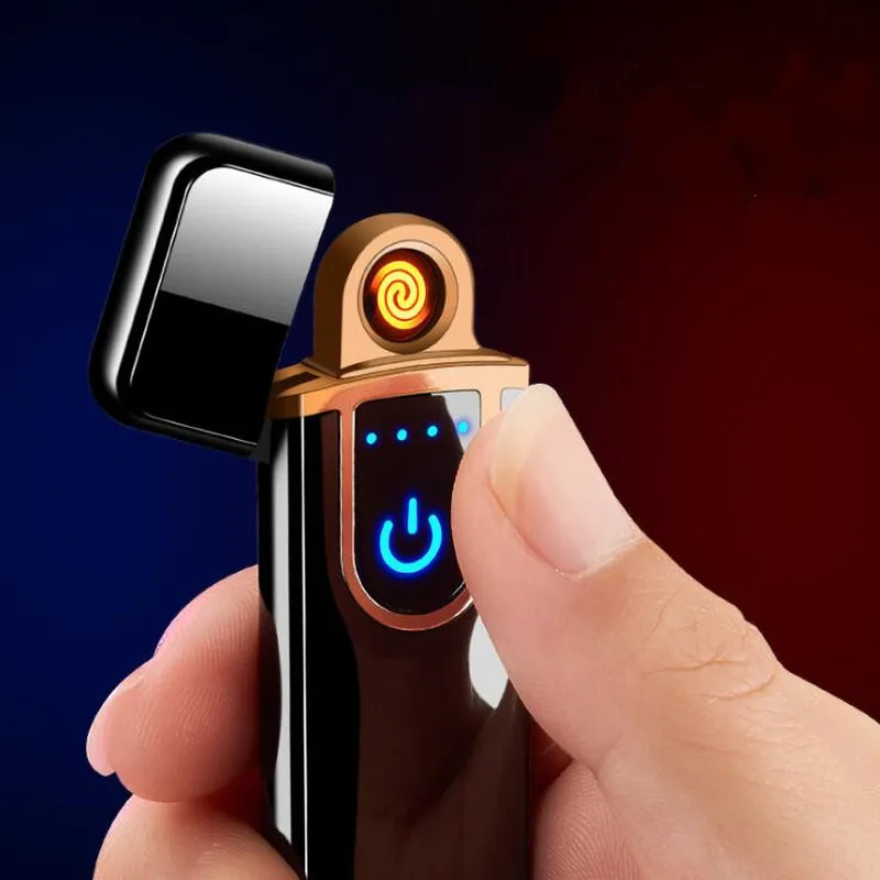 Зажигалка Мини сенсорный экран электрическая зажигалка для сигарет USB перезаряжаемая тонкая ветрозащитная металлическая зажигалка гаджет...