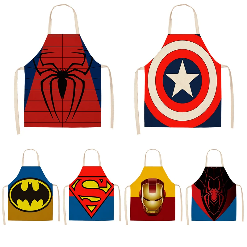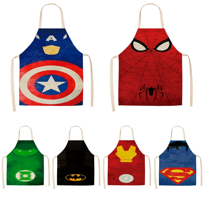 Кухонный Фартук для родителей и детей, с принтом Мстителей, супергероев, Бэтмена, без рукавов, из хлопка и льна, фартуки для мужчин и женщин, д...