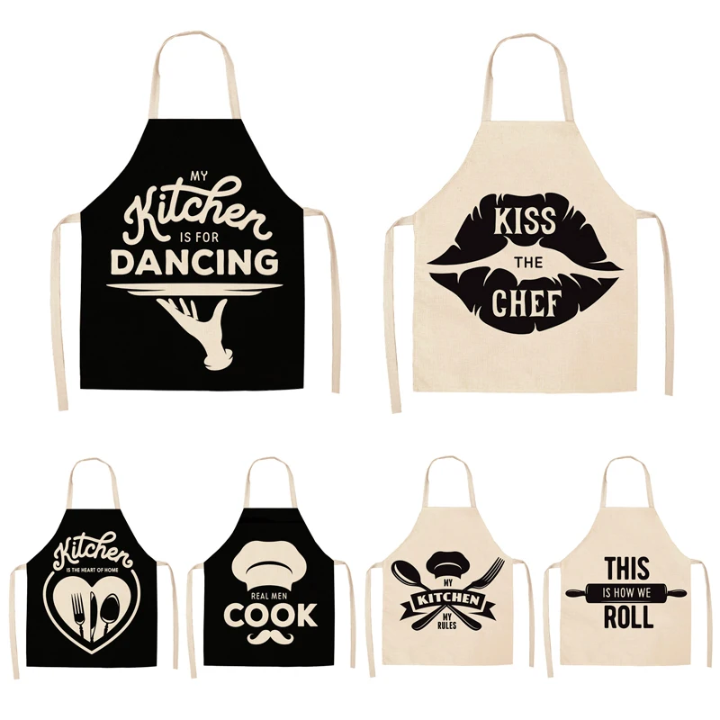 Наряд для родителей и ребенка Кухня фартук Черный и белый Кухонные принадлежности с принтом без рукавов, из хлопка и льна фартуки для Для му...