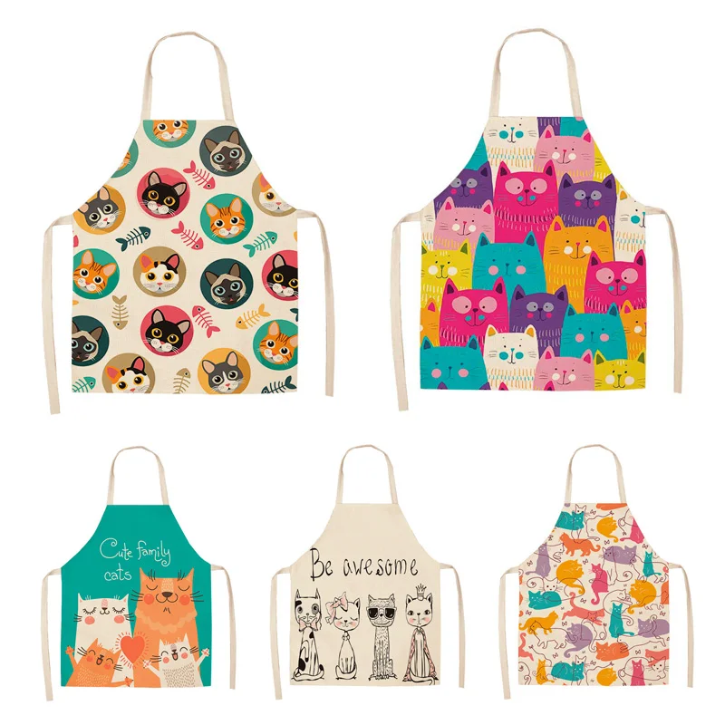 Наряд для родителей и ребенка Кухня Фартук забавный мультяшный Кот с принтом без рукавов, из хлопка и льна фартуки для Для мужчин Для женщин ...