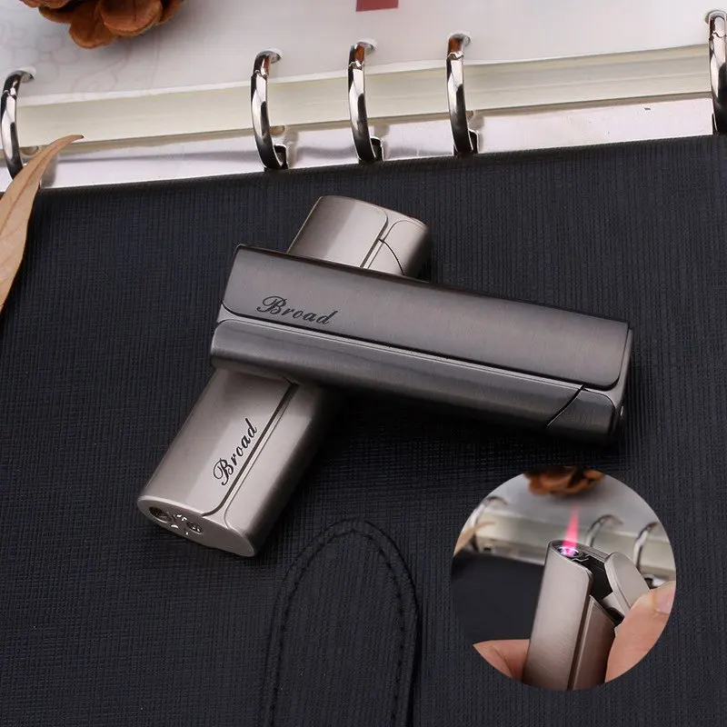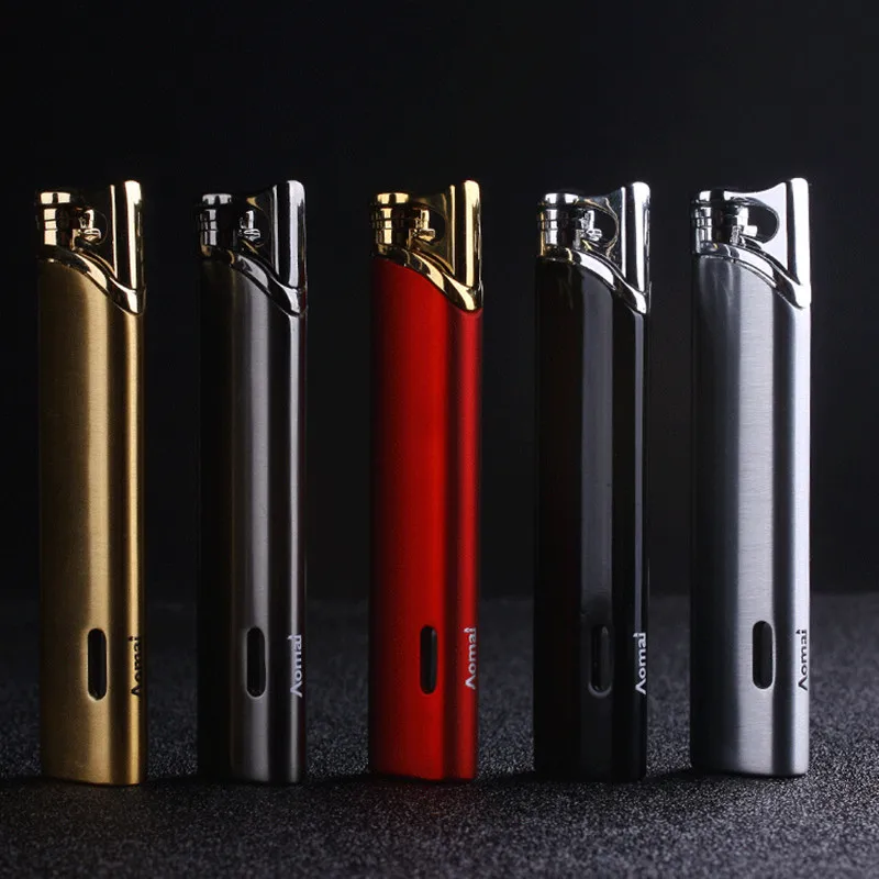 Ультра-тонкий для мужчин и женщин длинная полоса ветрозащитная Зажигалка металлическая газовая зажигалка красное пламя многоразового бутан прикуриватель