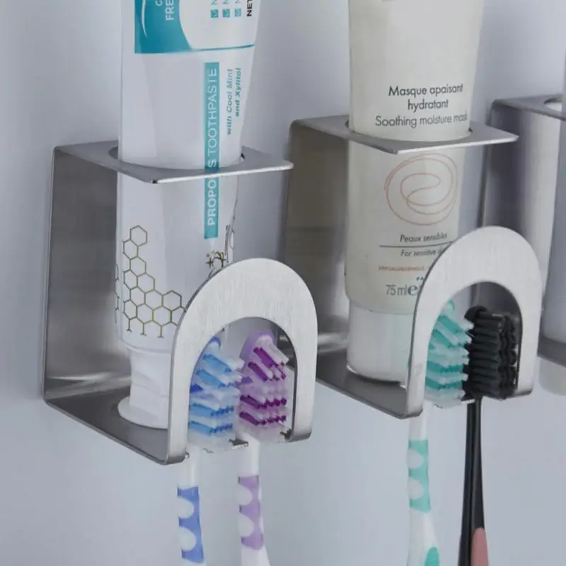 Кружка Self клейкие принадлежности Нержавеющая Сталь Настенный Ванная комната отверстия многоцелевой держатель для зубной пасты и щетки
