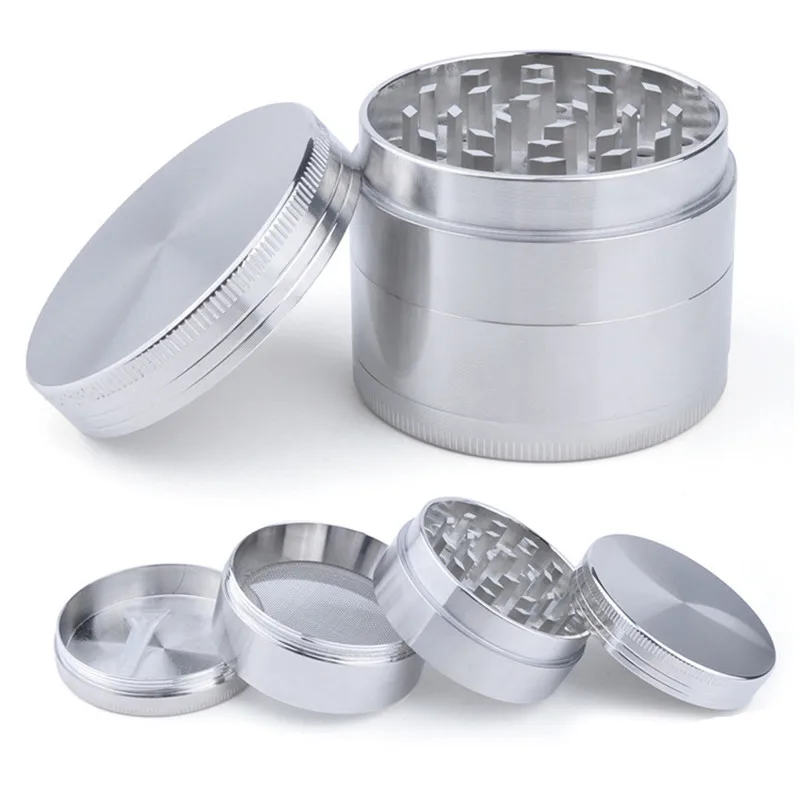 4 слоя Алюминий измельчитель дробилка для трав и водорослей с ручка мельницы серебро Цвет курить Точильщик аксессуары для сигарет