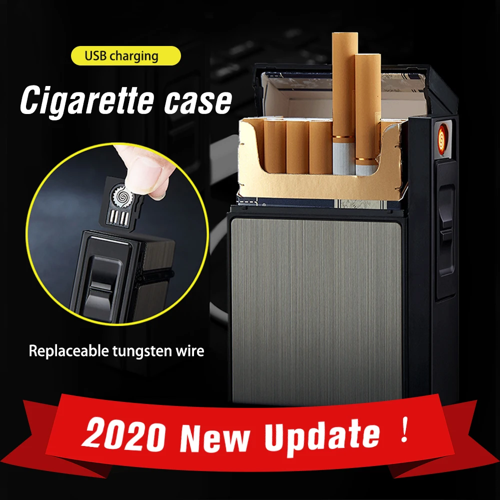 Металлический футляр для сигарет Зажигалка сменный воспламенитель вольфрамовый провод USB электронные табак водонепроницаемые зажигалки 20 шт сигареты