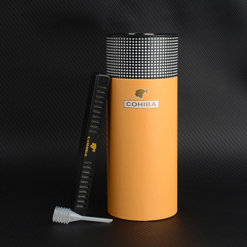 COHIBA 3 цвета кожаный портсигар Cedar Wood подкладка трубки мини-хьюмидор коробка с длинной увлажнитель гигрометр