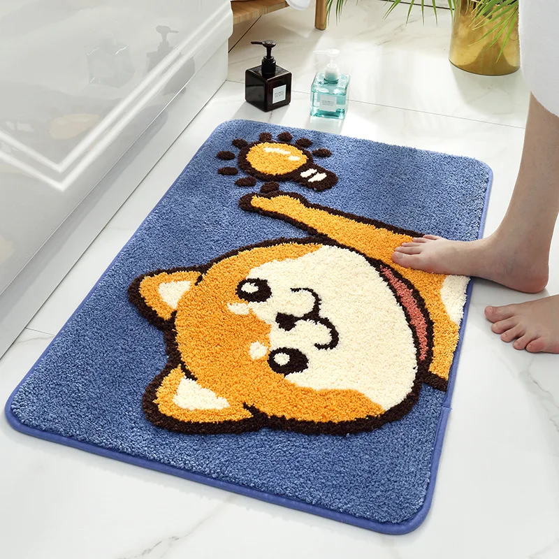 Коврик для ванной из флока с рисунком собаки и кошки, домашний коврик для спальни, впитывающий коврик для ног, нескользящий коврик для ванно...