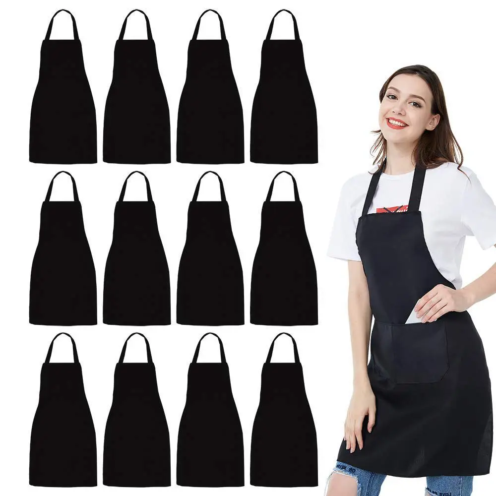 12 упак. Биб фартук-унисекс черный фартук оптом с 2 вместительных карманов машинная стирка для Кухня Крафта барбекю рисунок