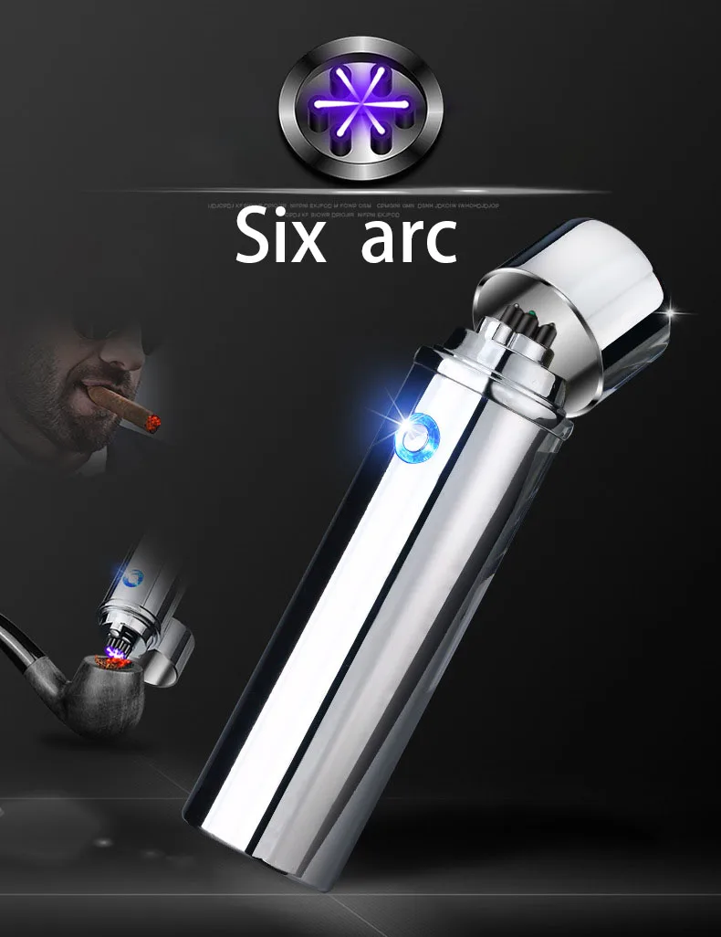 Шесть дуги трубы USB Зажигалка для Ciga сигаретная плазма сорняк Tabaco ветрозащитный электронный