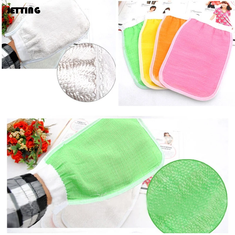 1 шт. Двусторонняя душ отшелушивающая Ванна перчатки для причесывания Массажная мочалка из люфы душа уход за кожей тела перчатки для душа ак...
