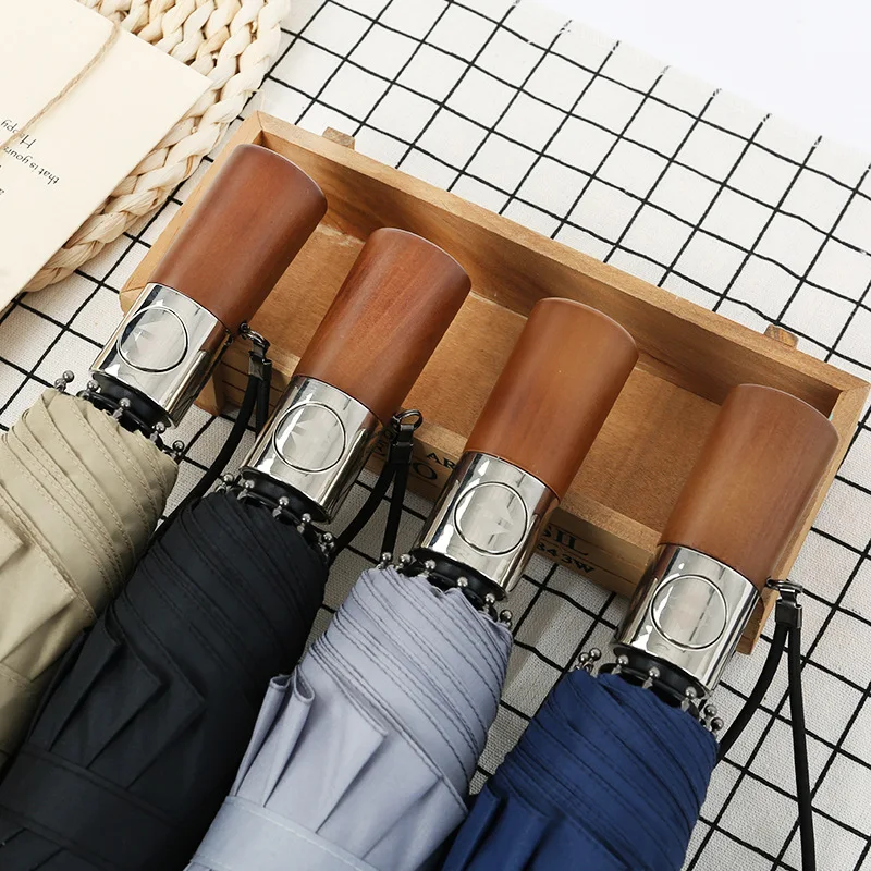 Высококачественный деревянный зонт со складной ручкой от дождя, деловые мужские автоматические зонты, ветрозащитный мужской зонт от дождя