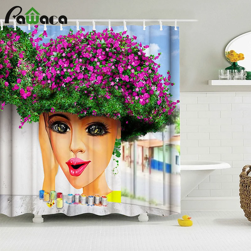 3D цифровой печати Водонепроницаемый душ Шторы Street Книги по искусству Африканская женщина узор Ванная комната Шторы полиэстер Спальня Ванн...