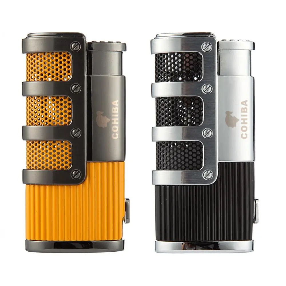COHIBA зажигалка для сигар бутан 3 фонарь Jet зажигалка с резак для сигар аксессуары ветрозащитная Зажигалка для сигарет подарочная коробка