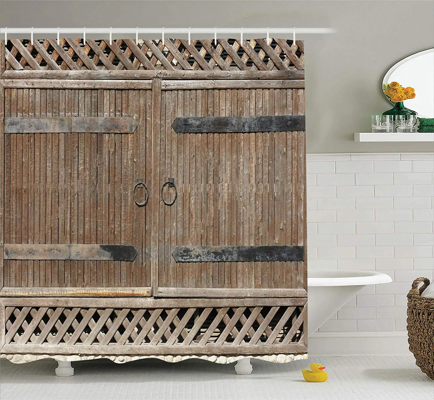 Деревянные ворота с металлической ручкой старый дом запись выветривания деревенском богато полиэфирной ткани Ванная комната Душ Шторы ком...