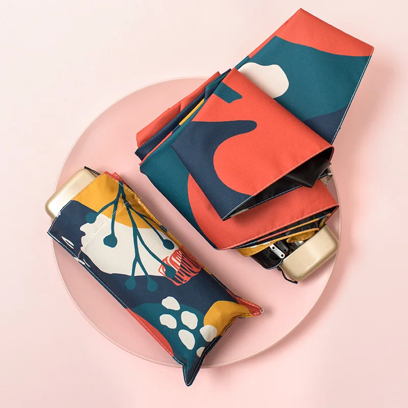 Плоский Мини зонтик от дождя для женщин УФ Защитный зонтик для девочек зонты от солнца ветрозащитные 6K портативный зонт для путешествий разноцветный UPF50 +