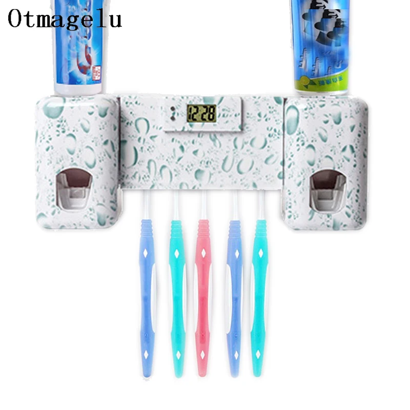 OnnPnnQ аксессуары для ванной комнаты часы Автоматическая зубная паста диспенсер зубная щетка держатель с комбинированным набором зубная пас...