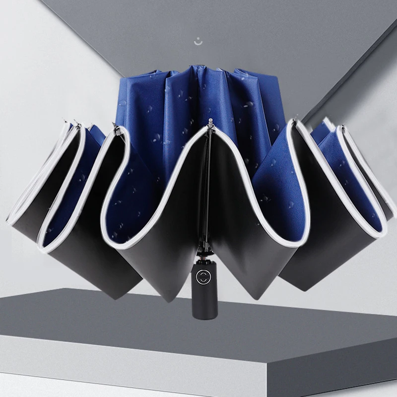 Мужской автоматический складной зонт в деловом стиле, ветрозащитный зонтик, женский зонт для дождя, мужской складной зонт, перевернутый, му...