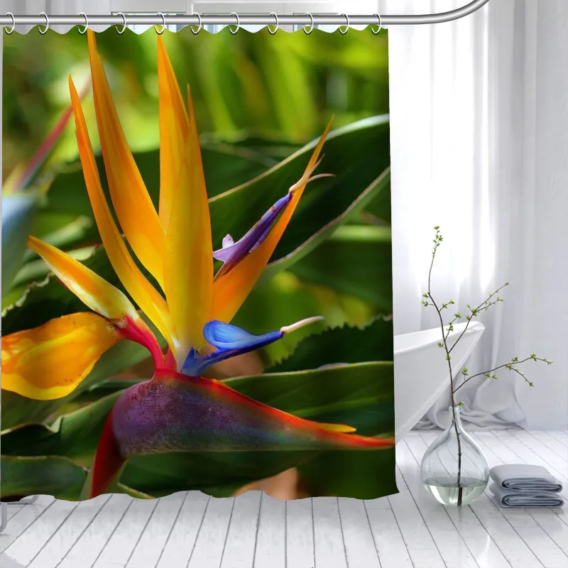 Горячая продажа птица рая цветок пользовательские занавески для душа 3D Водонепроницаемый полиэстер ткань для ванной занавес 12 крючков для ...