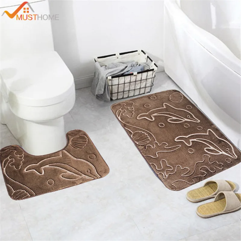 2 шт. 3D Дельфин узор Ванная комната Для ванной Коврики комплект mirrofiber мультфильм Для ванной Ковры комплект
