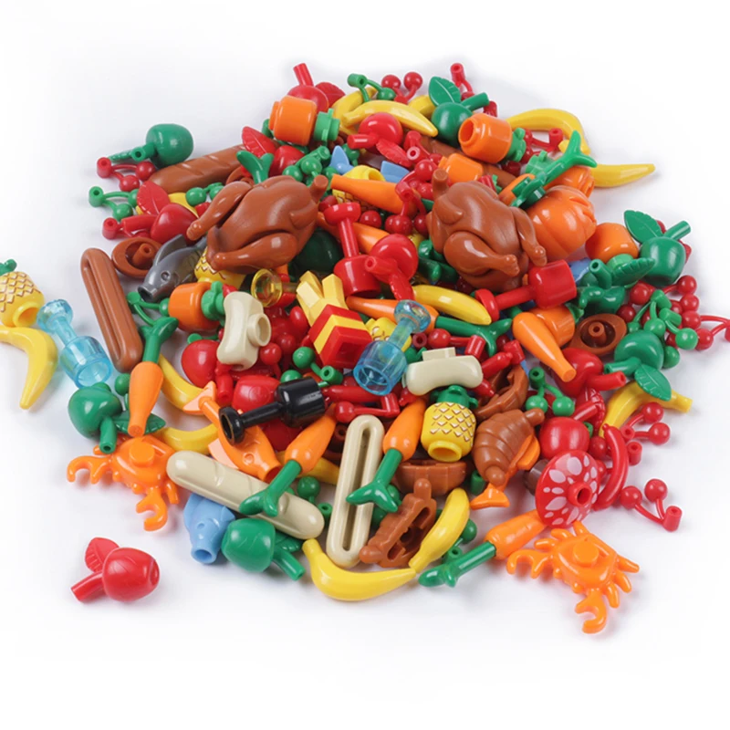 Город Друзья интимные аксессуары Запчасти Building Block Фруктовый Хлеб рыбы Еда банан вишня для Legoe городские кварталы кирпичи игрушечные лошадк...