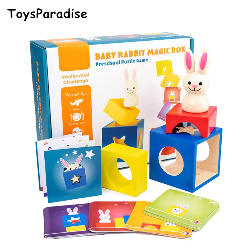 Прямая поставка, детские игрушки, кролик, Волшебная коробка, деревянные игрушки для детей, животные, геометрические строительные блоки, раз...
