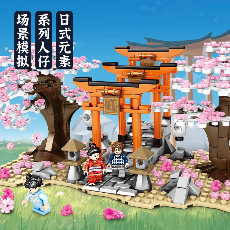 Sembo Sakura City Street MOC Creator Expert тысяча торий, набор моделей, строительные блоки, кирпичи, вишневый цвет, домик, дерево, детские игрушки