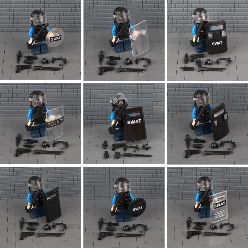 Полицейское оружие кирпичи Сват щит армия, солдатики шлем строительные блоки противогаз аксессуары кирпич LegoINGlys игрушка для детей